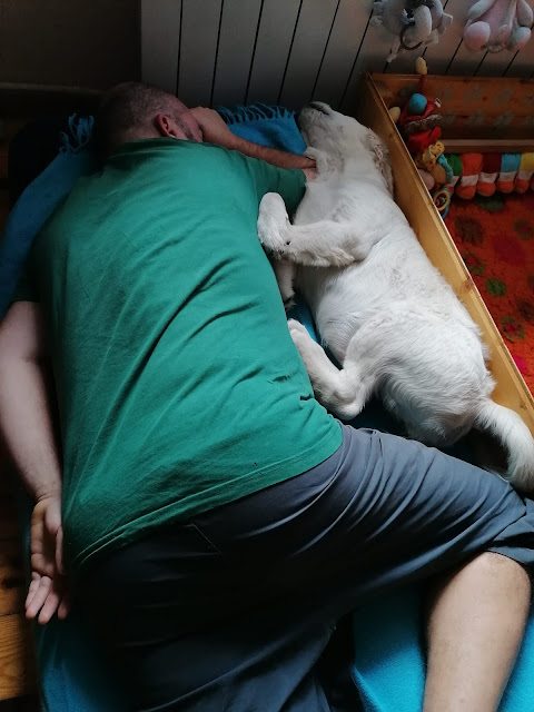 To był bardzo długi i ciężki dzień, pełen emocji, strachu ... na szczęście wszystko skończyło się dobrze (no oprócz cesarskiego cięcia - ale na to nie mieliśmy wpływu). Teraz czas na sen. Materac układam bezpośrednio przy kojczyku , to tu teraz będę spędzać wszystkie noce aż maluszki nie skończą 3 tygodni. W kojczyku jest dość ciasno i choć Hera jest troskliwą i uważną mamą trzeba jej pomóc w ułożeniu , tak aby żaden maluch nie został przygnieciony.